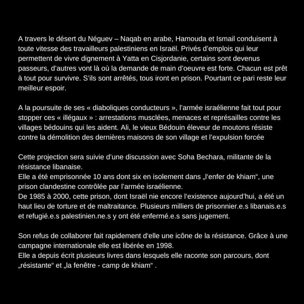 Dans le cadre du festival de films palestiniens, le centre de culture Espace Noir à St-Imier organise en collaboration avec le CAP, une soirée de solidarité.